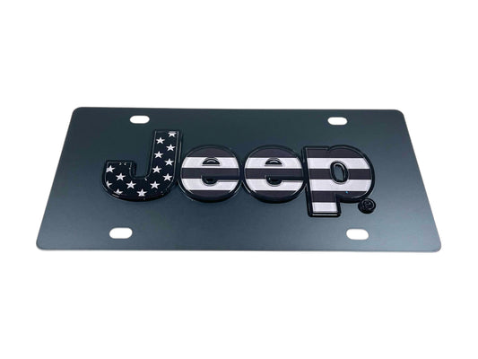 Jeep Blacked-Out USA Flag Carbon Steel License Plate