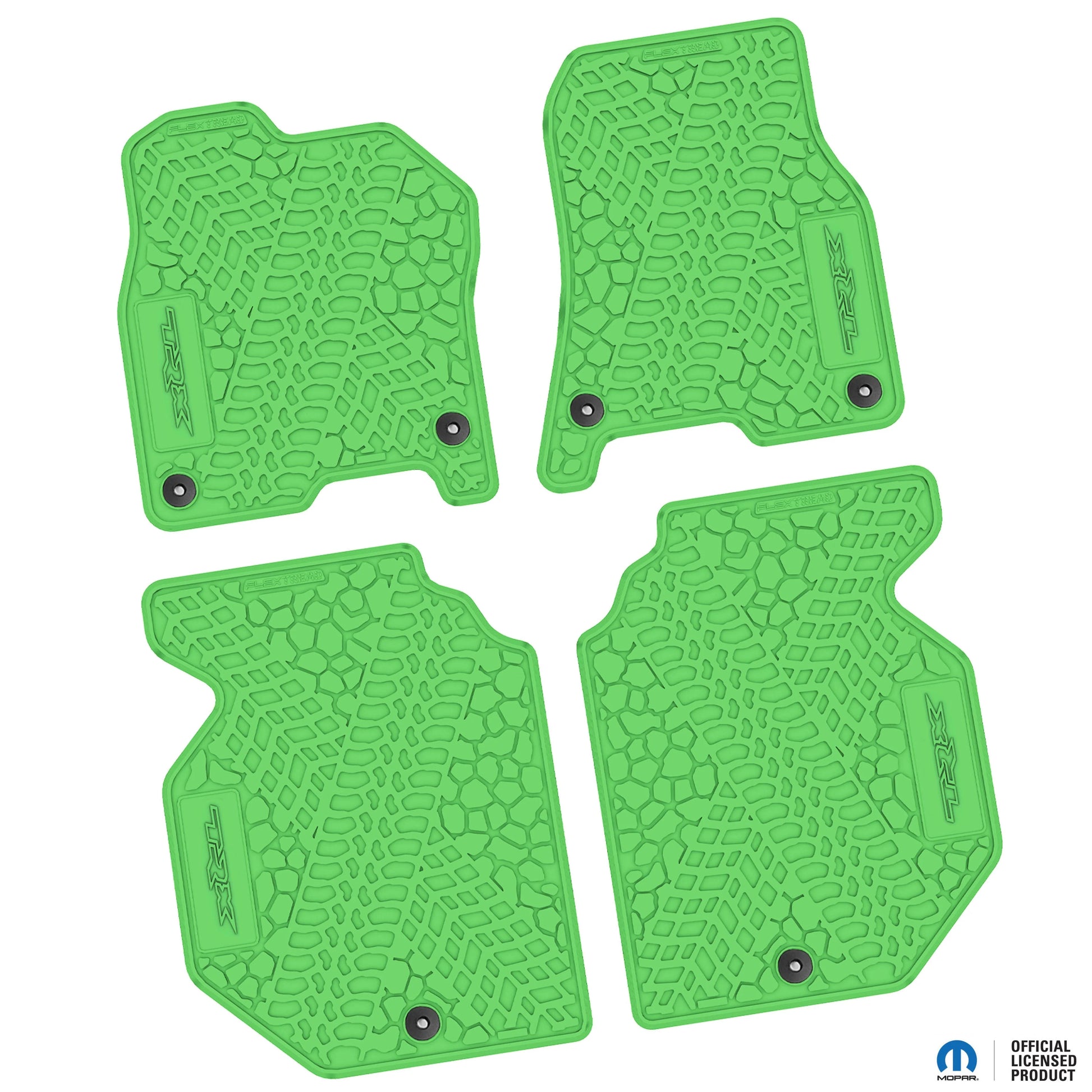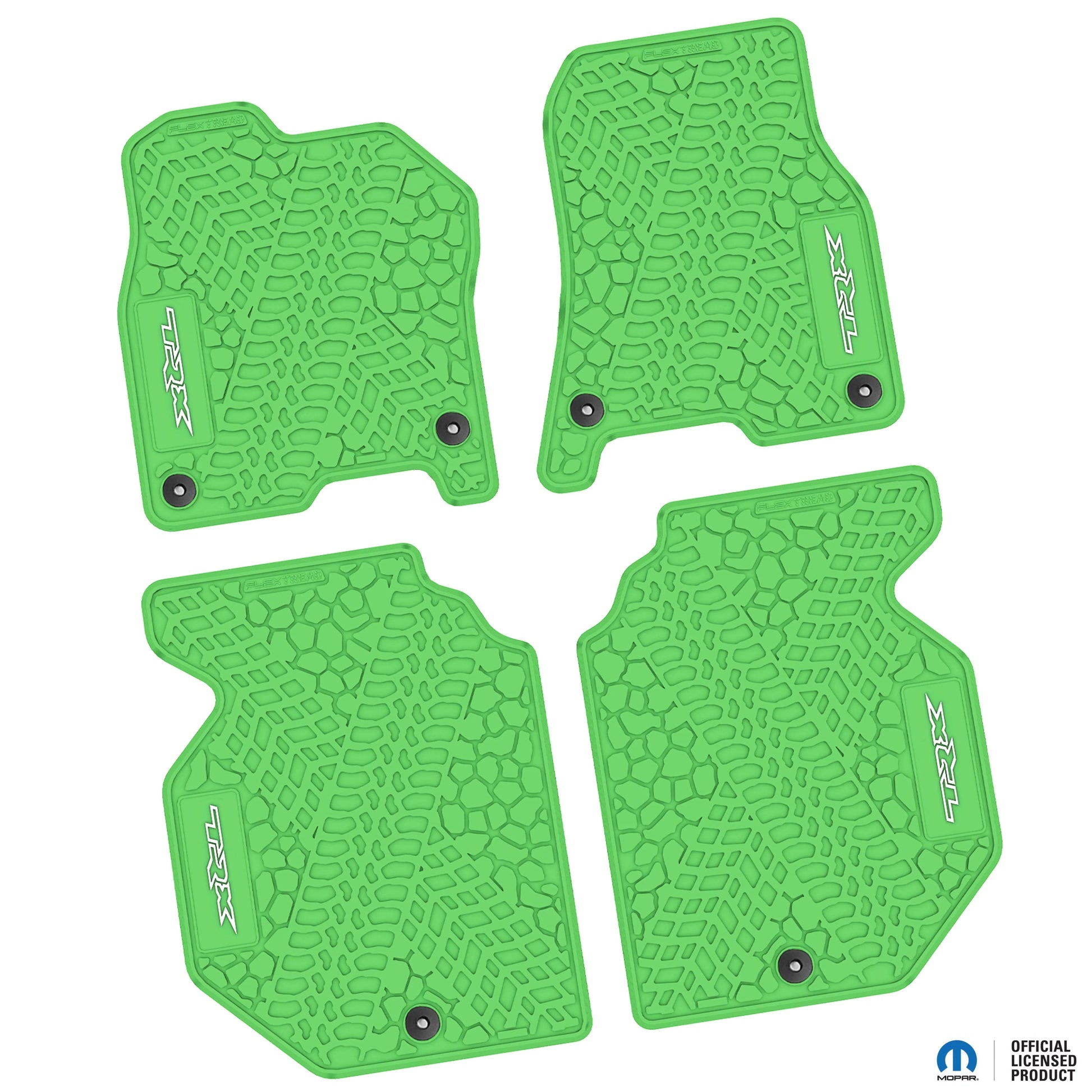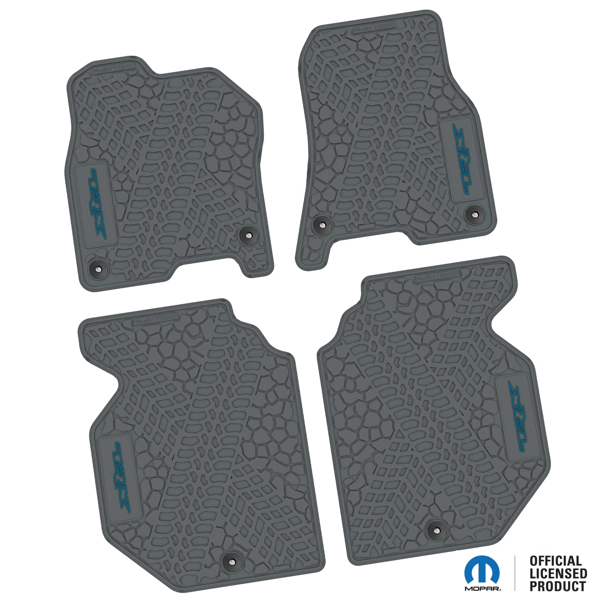 FlexTread floor mats are easy to remove, roll up, and clean with simple soap and water. The Sure-Grip anti-skid backing and factory-correct safety securement points help keep the mats securely in place, with button retainers on both the driver and passenger mats where applicable. They also help reduce interior noise by acting as an additional insulation layer inside the cabin.