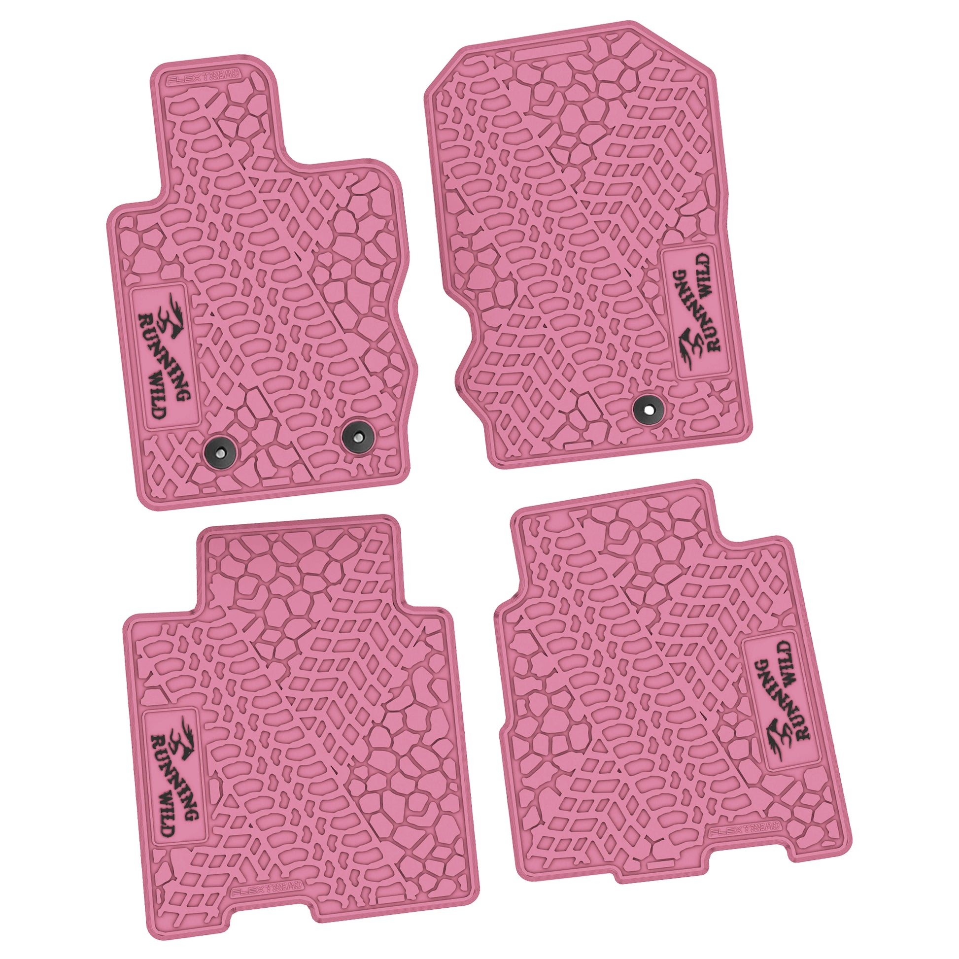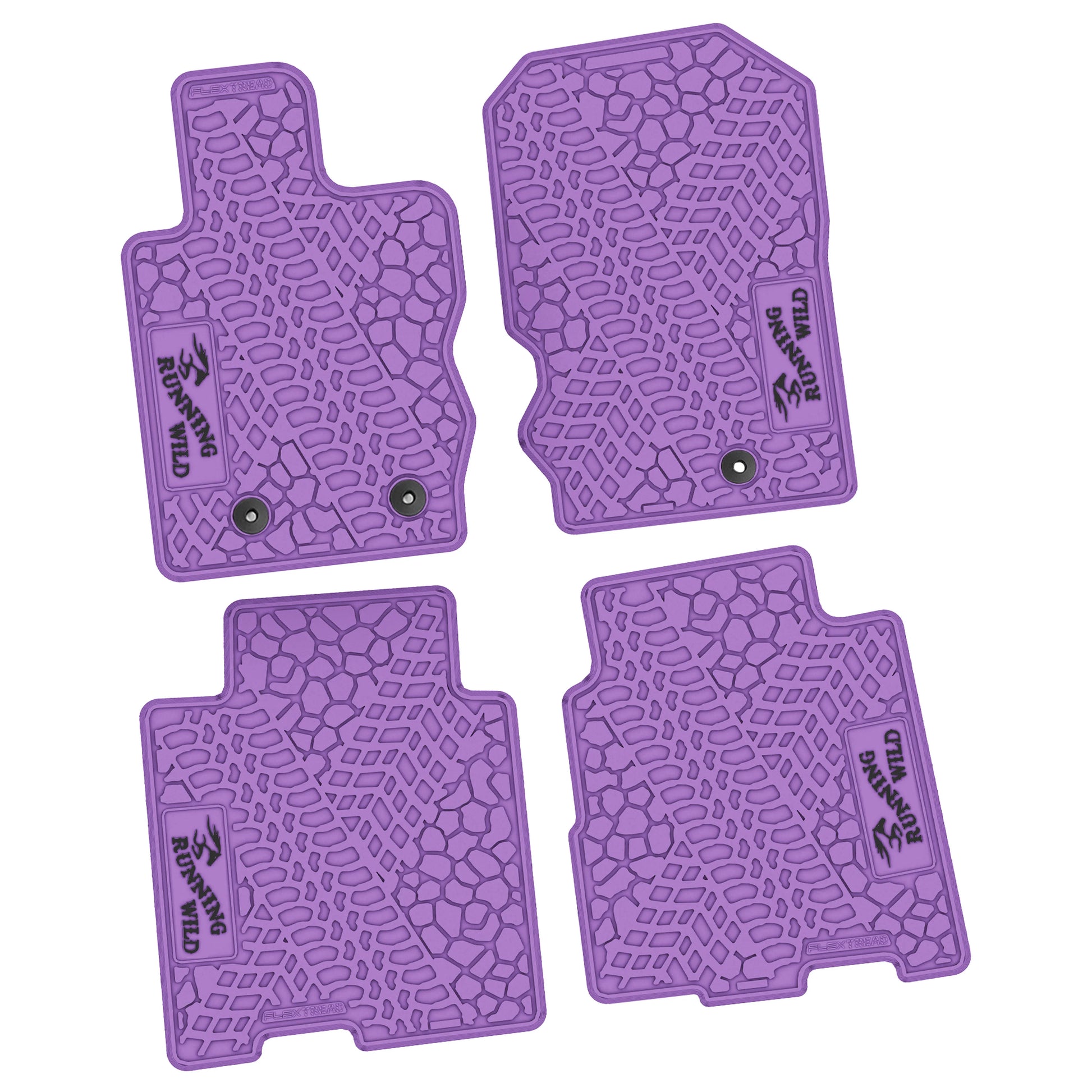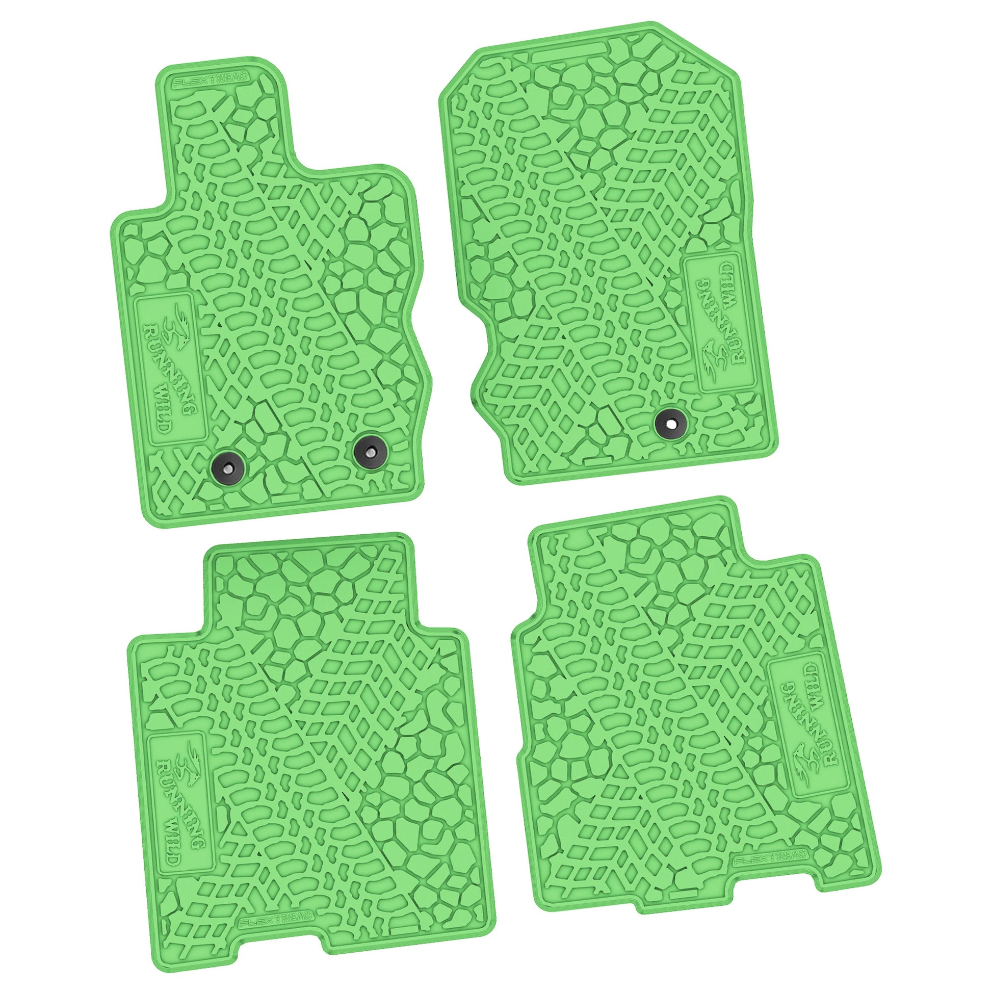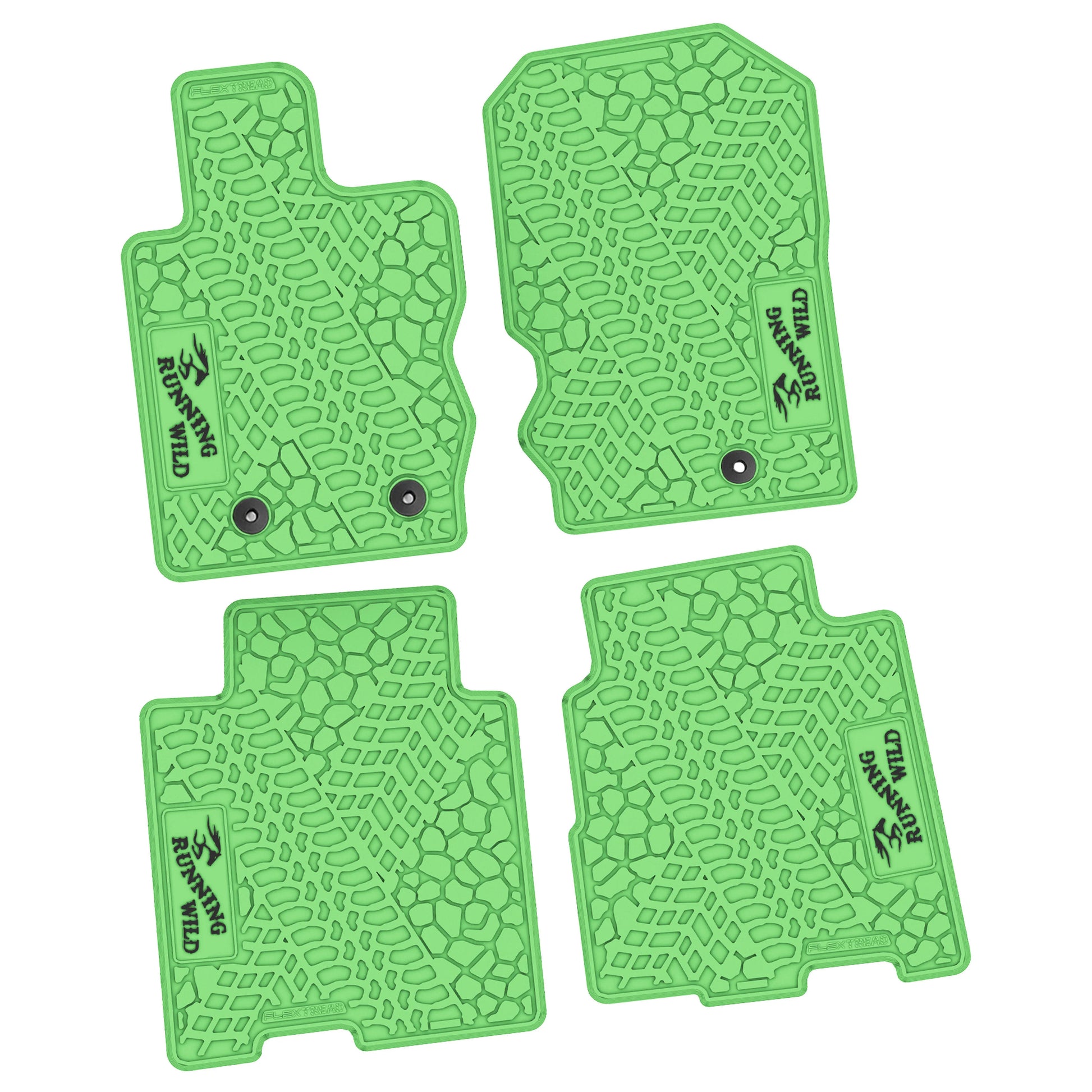 These FlexTread custom-fit floor mats are designed specifically for the 2021–2025 Ford Bronco 4-Door and are precision-engineered to match the factory floorpan for an exact, secure fit. This 4-piece floor mat set delivers durable, all-weather protection while maintaining a clean, OEM-style appearance and features the Running Wild logo.